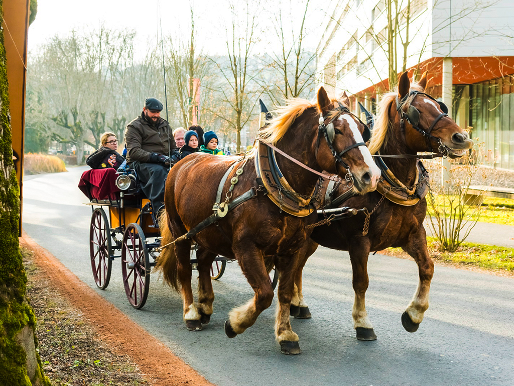 Genießen Sie an den Adventsonntagen eine romantische Fahrt mit der Kutsche durch den winterlichen Curpark.